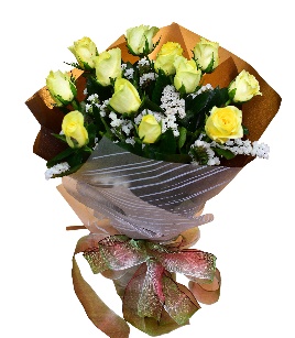 A bouquet of 12 yellow roses