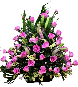 A basket arrangement of 3 doz pink roses